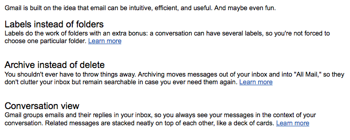 Gmail is a great example of this. Labels and conversations go against everything you have learned about email up until this point. You’re telling me an email can be in two places at once? This doesn’t make sense to a user who can’t make the switch from folders, to labels. Even though labels are a far better way of organizing content.