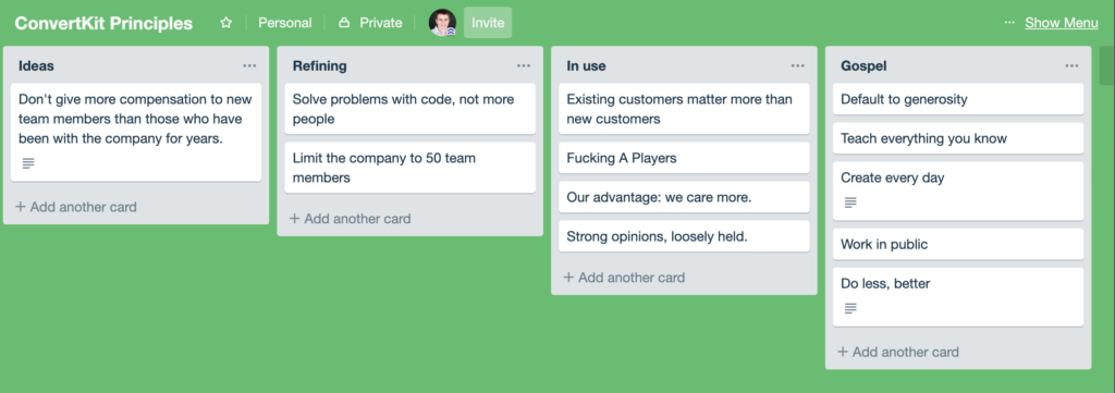 We have quite a few principles that have slowly evolved over time at ConvertKit. But we don’t have a defined system for creating and refining more. This post is a first attempt at turning a scattered process into a reliable system to create new principles.