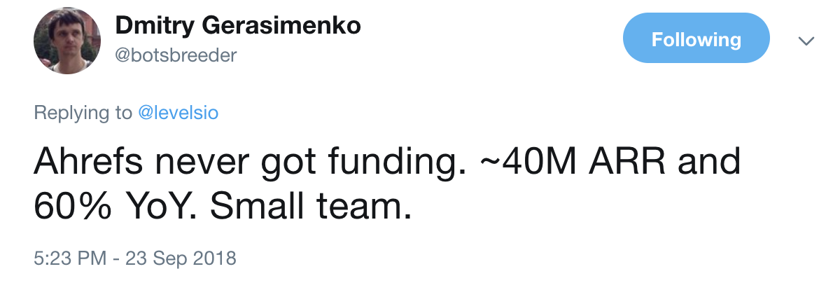 Then I came across this Tweet from Dmitry, the CEO and founder of Ahrefs (a very popular SEO SaaS tool).