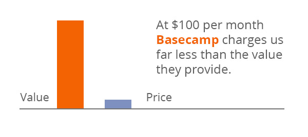 At ConvertKit we get so much value from Basecamp that if they doubled their price we wouldn’t blink. Really, they could 10x our price to $1,000 a month and they would still provide more value for us than we’d be paying.