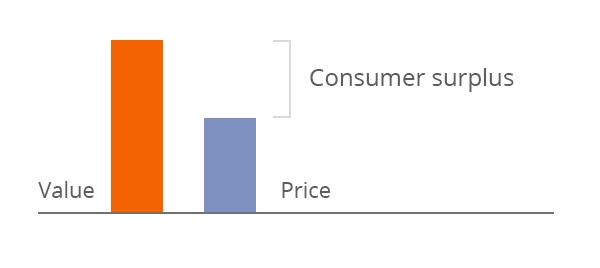 Think about the difference between the value you receive from a product and the price the company charges for it—often referred to as consumer surplus.