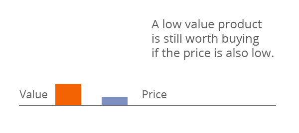 A company with a low price that provides a minimal amount of value would look more like this: