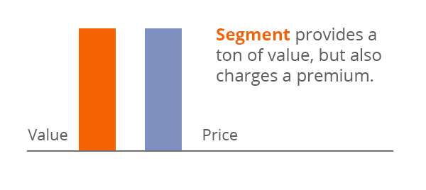 For us Segment is on the opposite end of the spectrum. They provide an incredible amount of value managing our data across apps, but they charge a ton for it. The high value is equally matched by a high price, not leaving any surplus.