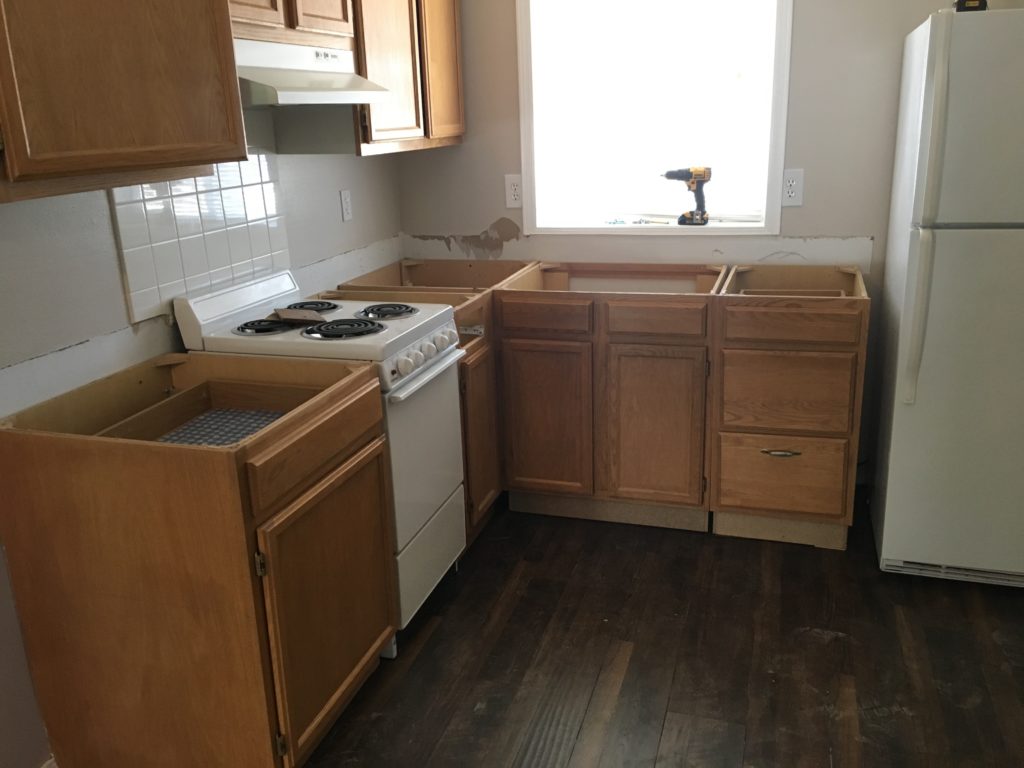 Starting to put the cabinets back in. Unfortunately we didn’t have time to paint them (yet).