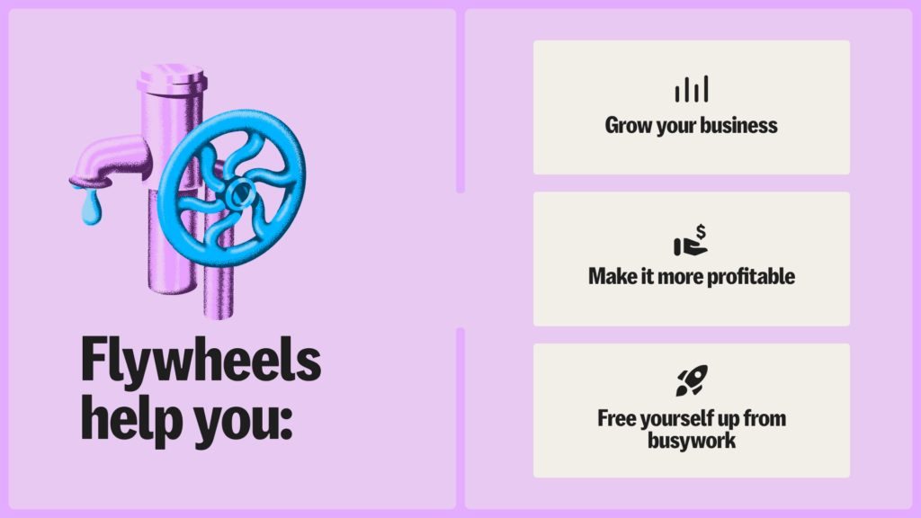 So far, you’ve made sure each part of the flywheel flows smoothly into the next. But once the flywheel completes a rotation, the next rotation should be even easier. An ideal flywheel builds momentum and propels itself forward, spinning more easily each time.