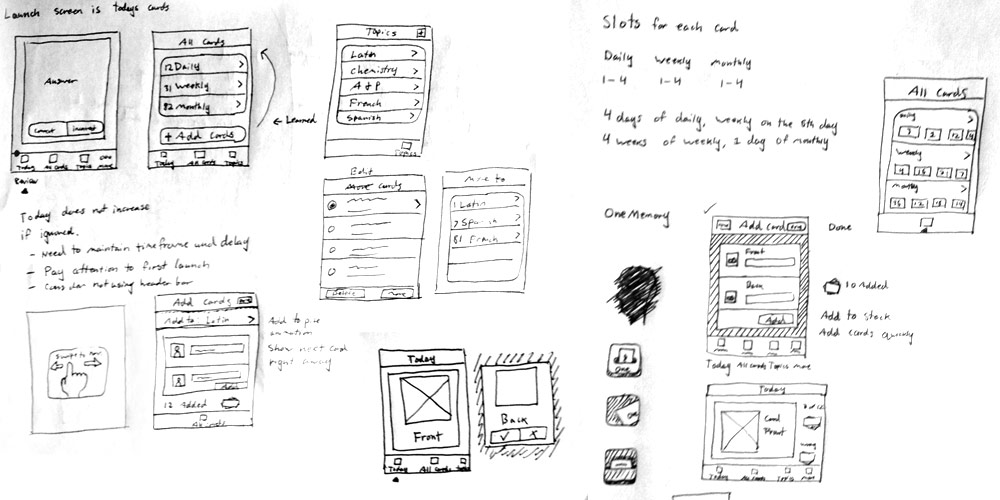 I start every project with sketches. As you can see above they aren’t very detailed or even very good. But the important thing is that they convey the ideas of the application. Each thumbnail is accompanied by notes about features and design elements I want to include. I even sketch out icon ideas and try names. Whatever comes to mind I put it on paper.