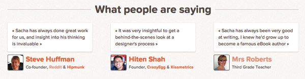 Sacha:  Let’s move onto something else which is very important, which is testimonials, and social proof.